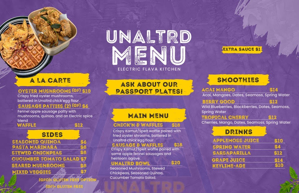 At UnAltrd, we believe food is medicine. That’s why our meals are crafted with fresh, organic, and locally sourced ingredients, free from additives or artificial flavors. Every dish is thoughtfully prepared to align with your wellness goals, combining the richness of nature with a love for great taste.