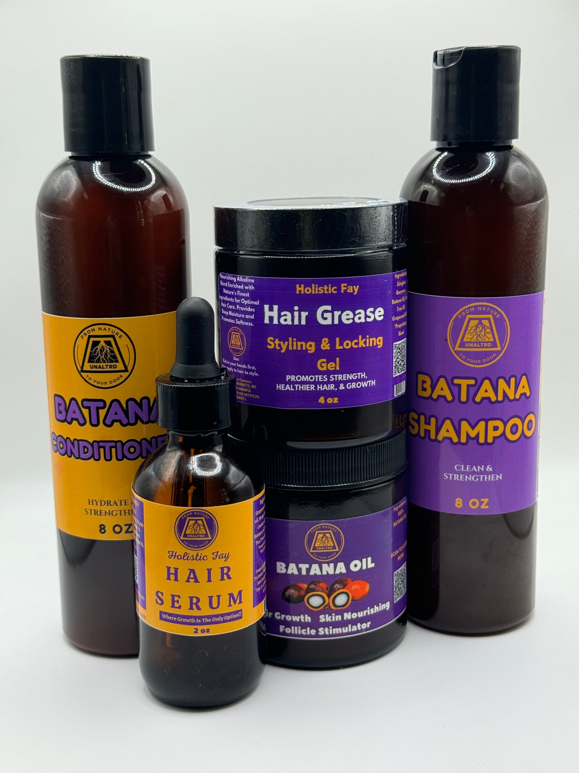 Transform your hair care routine with the UnAltrd Batana Hair Care Bundle — a powerful 5-piece collection designed to cleanse, hydrate, repair, and style your hair naturally. Infused with nutrient-rich Batana Oil, sustainably sourced and treasured for generations in Central America (source), this bundle supports growth, restores shine, and keeps your hair looking its best from root to tip.