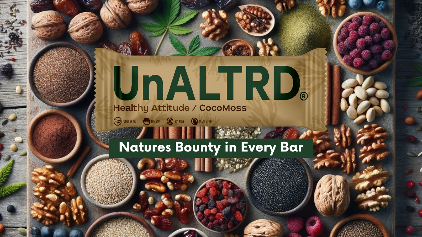 CocoMoss UnALTRD Bars Contain: Dates, Amaranth, Hemp Seeds, Sesame Seeds, Ceylon Cinnamon, Grapeseed Oil